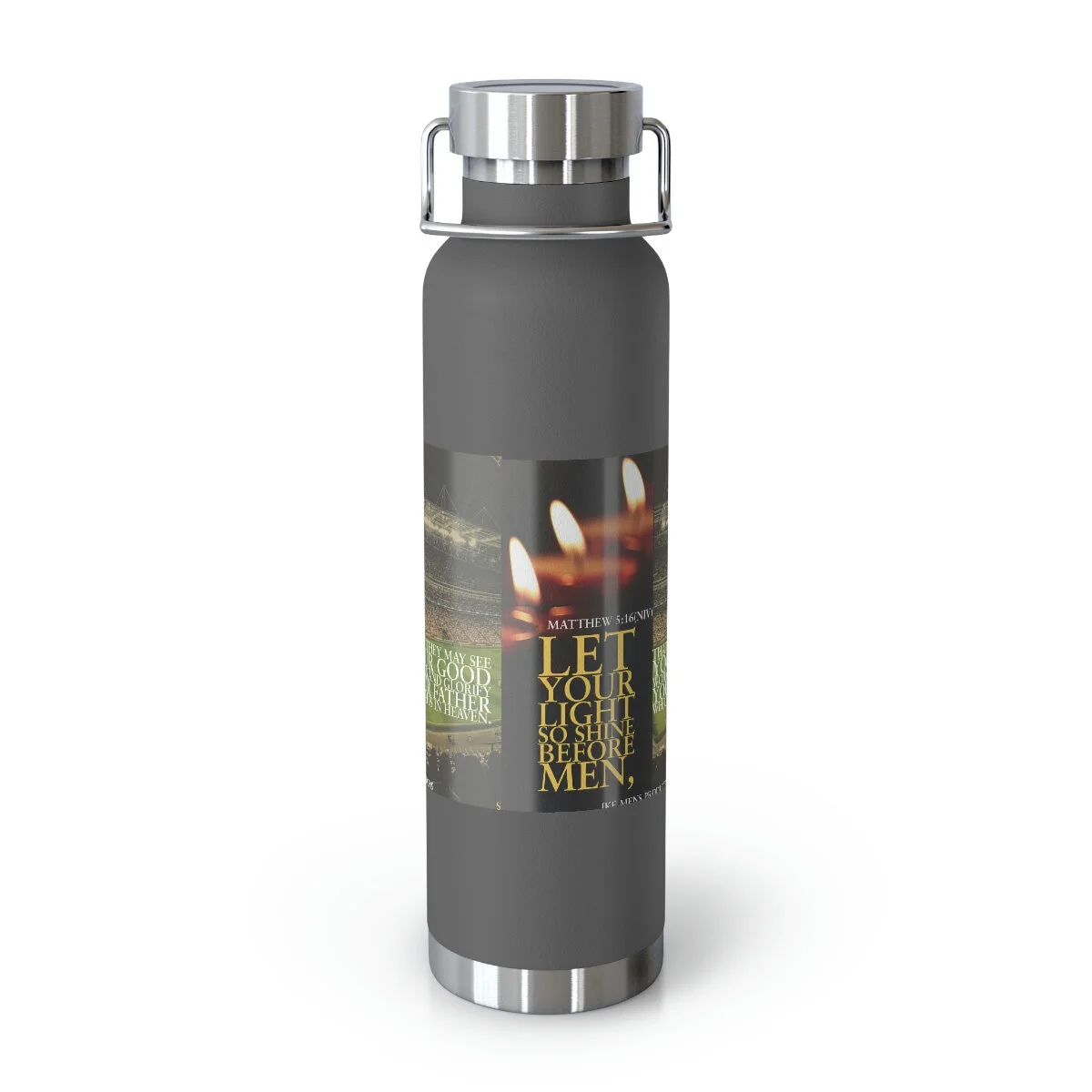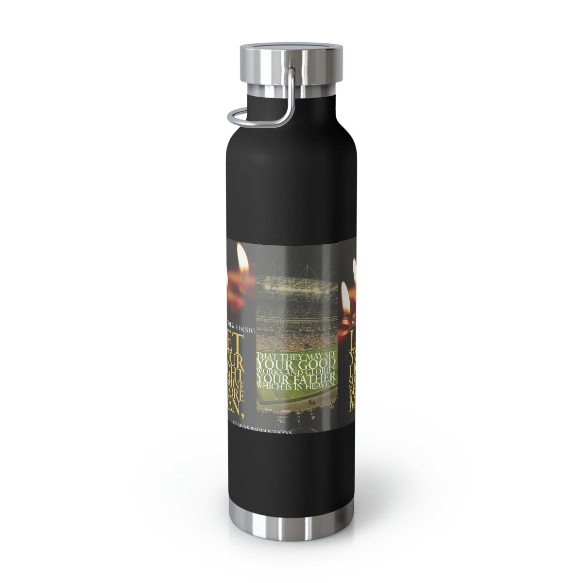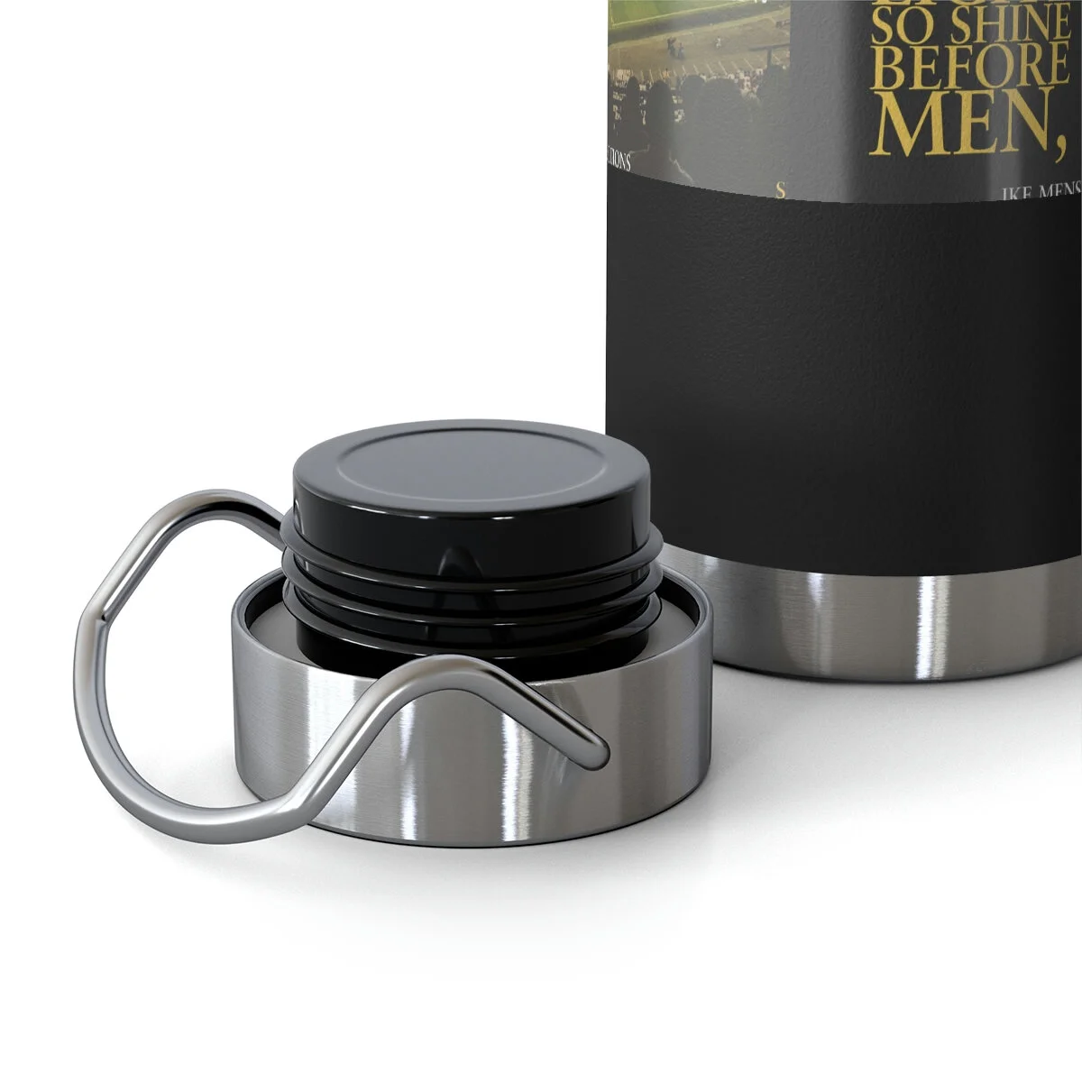 Vacuum insulation is a big deal if you care about beverage temperature change. Double-wall construction means that hot liquids can remain hot up to 12 hours while colder choices can last a full 48 hours; that’s two whole days. Furthermore, these bottles are condensation-proof - no sweating or slipping. Built to fit standard vehicle cup holders, the stainless steel sides are both scratch and fade resistant. .: Spill-proof .: Scratch and fade resistant .: 22oz (0.65 l) .: One size: 10.6" in height, 2.9" in width .: Note: semi-transparent design elements do not always render correctly on dark-colored bottles
