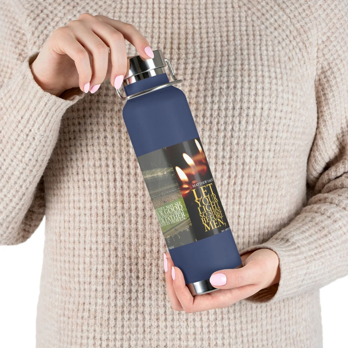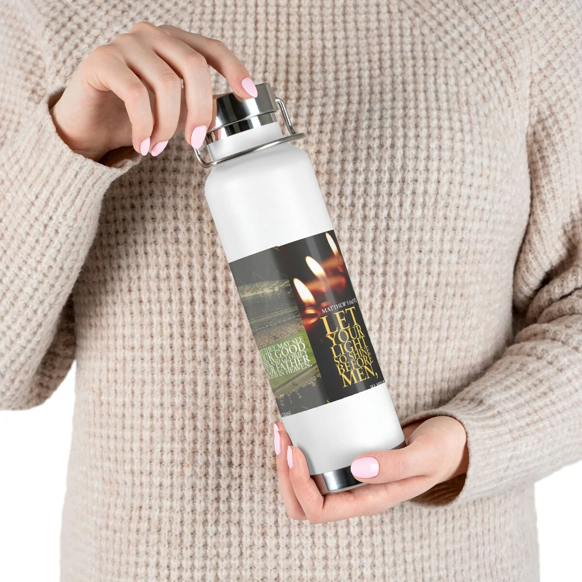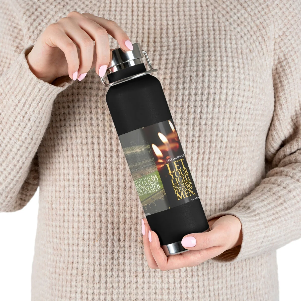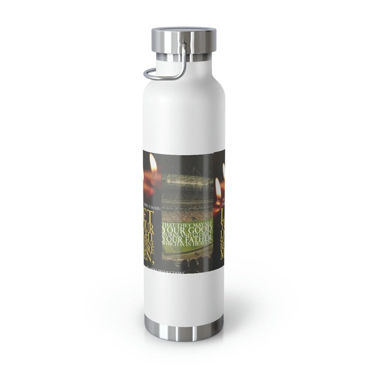 Vacuum insulation is a big deal if you care about beverage temperature change. Double-wall construction means that hot liquids can remain hot up to 12 hours while colder choices can last a full 48 hours; that’s two whole days. Furthermore, these bottles are condensation-proof - no sweating or slipping. Built to fit standard vehicle cup holders, the stainless steel sides are both scratch and fade resistant. .: Spill-proof .: Scratch and fade resistant .: 22oz (0.65 l) .: One size: 10.6" in height, 2.9" in width .: Note: semi-transparent design elements do not always render correctly on dark-colored bottles