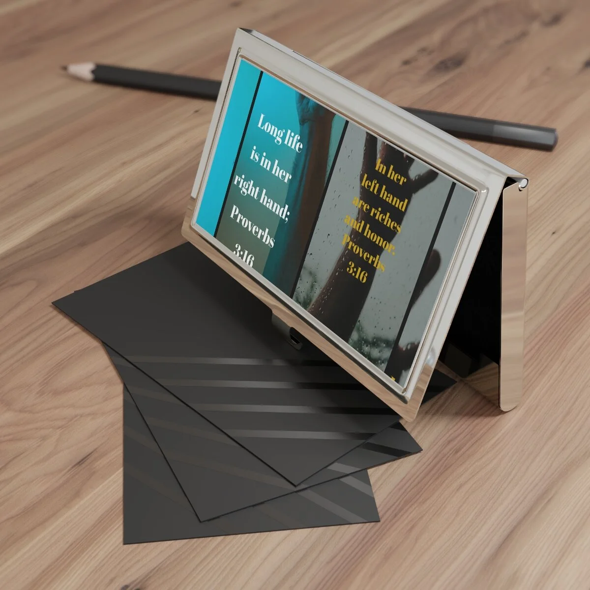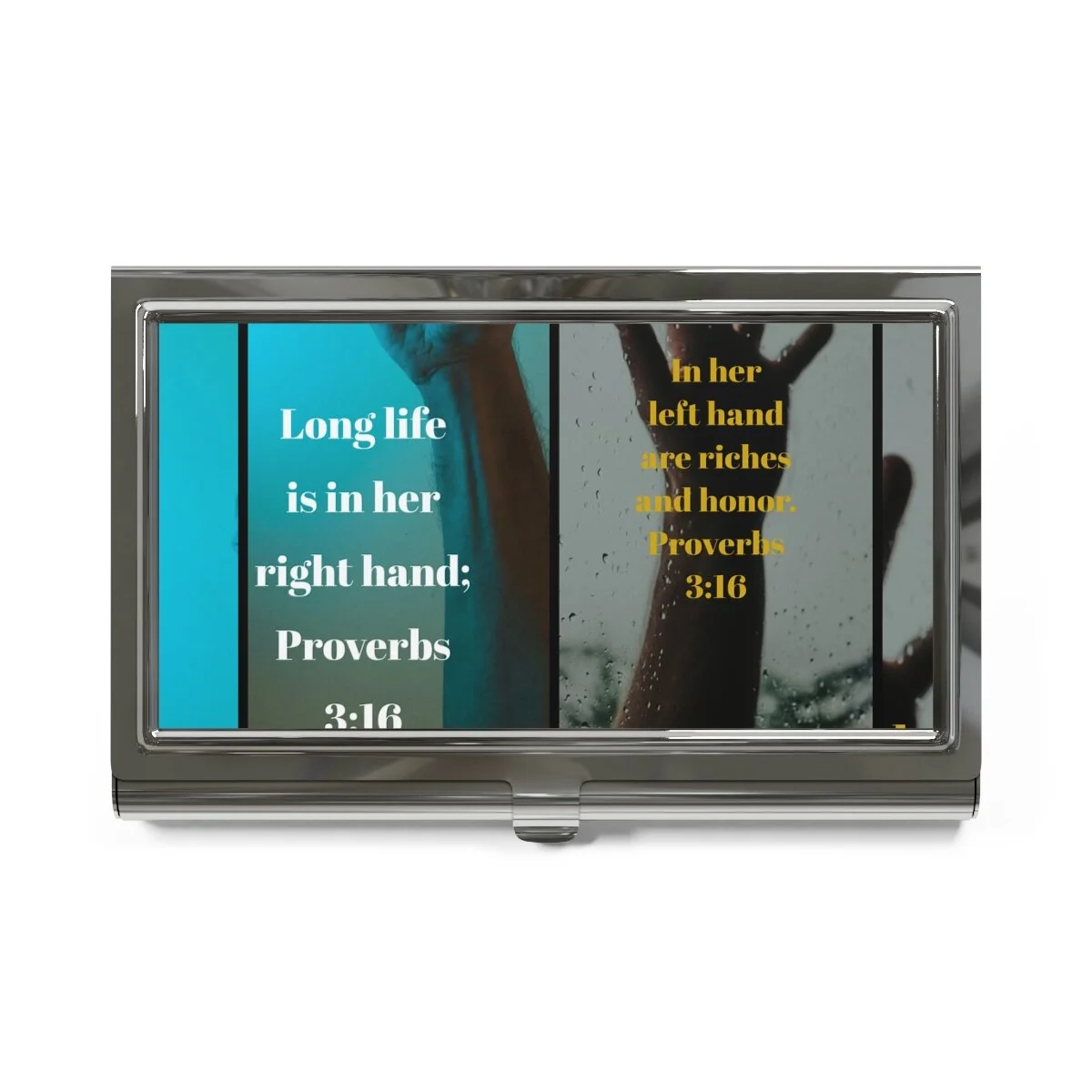 This custom business card holder is here to take on your personality and add character to your advertising. Comes complete with a sleek polished metal surface, a velvet-like interior storage base, and a capacity to store up to 20x 3.5" by 2.0"cards. .: Velvet-like interior storage base .: Stores up to 20 standard 3.5" x 2.0" (8.89cm x 5.08cm) business cards .: Glossy metallic finish .: Polished metal surface .: Friction snap closure
