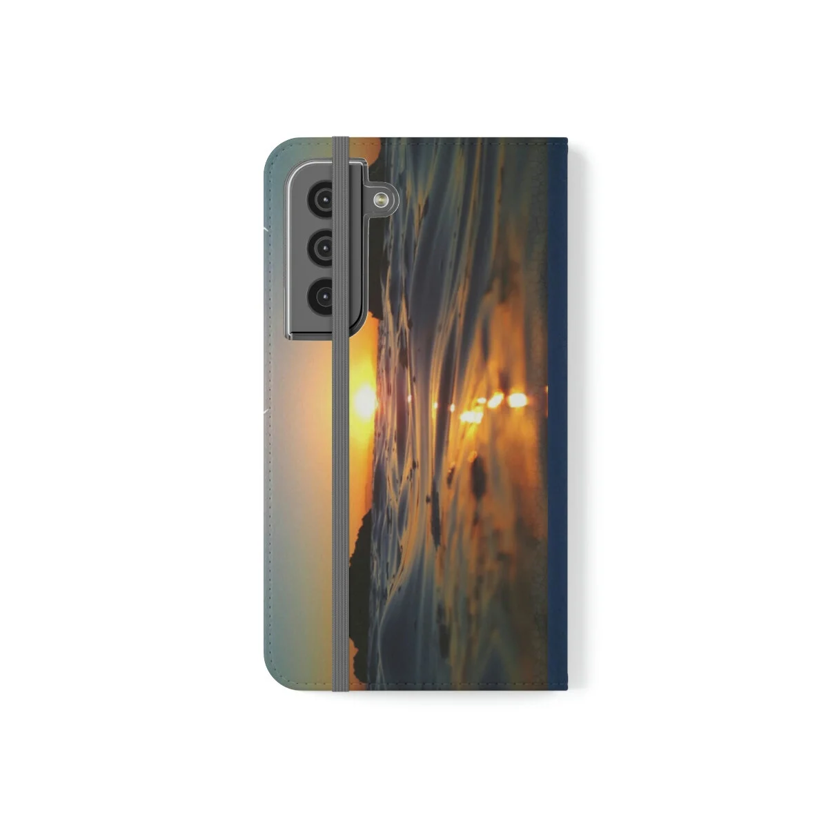 Our flip cases (also known as folio cases) are made from faux leather, that's excellent for printing your original designs in vibrant colors. Each case serves as a protective layer and a phone stand. They feature a flat, elastic fastening to keep them closed and stitched inside pockets to store cards and cash storage easily. The polycarbonate inner shell keeps devices secure during regular wear and tear.
