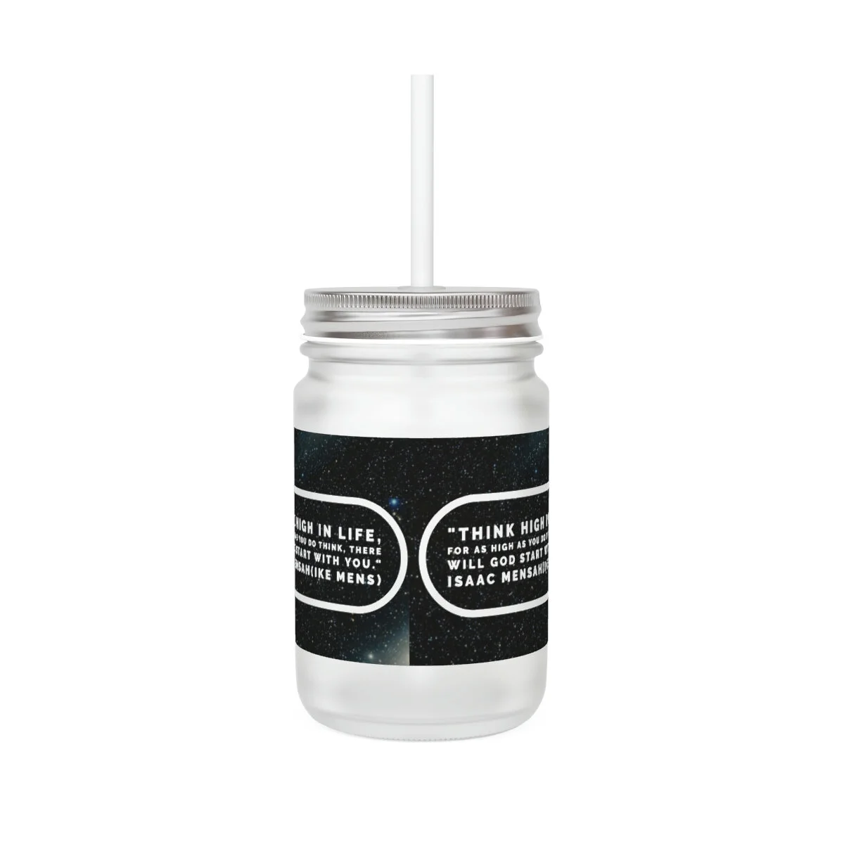 Mason jars enhance anyone's drinking experience - a personalized mason jar however is pure bliss. Whether it's homemade lemonade, ice tea, or tasty cocktails, our 12oz mason drinking jars are perfect for families, couples, and individuals alike. Made with sleek frosted glass - ideal for printing in high detail - these personalized mason jar mugs come complete with a straw and lid.