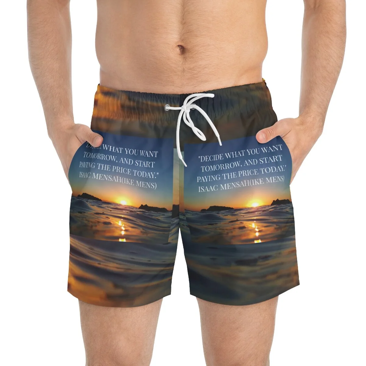 Nothing can swoosh down the summer heat like a dive into the sea - or into the nearest pool. These personalized swim trunks are here to take on your exclusive designs and most playful patterns. With an all-over-print capability accompanied by vivid colors, these swim trunks help you conquer the summer in custom style.