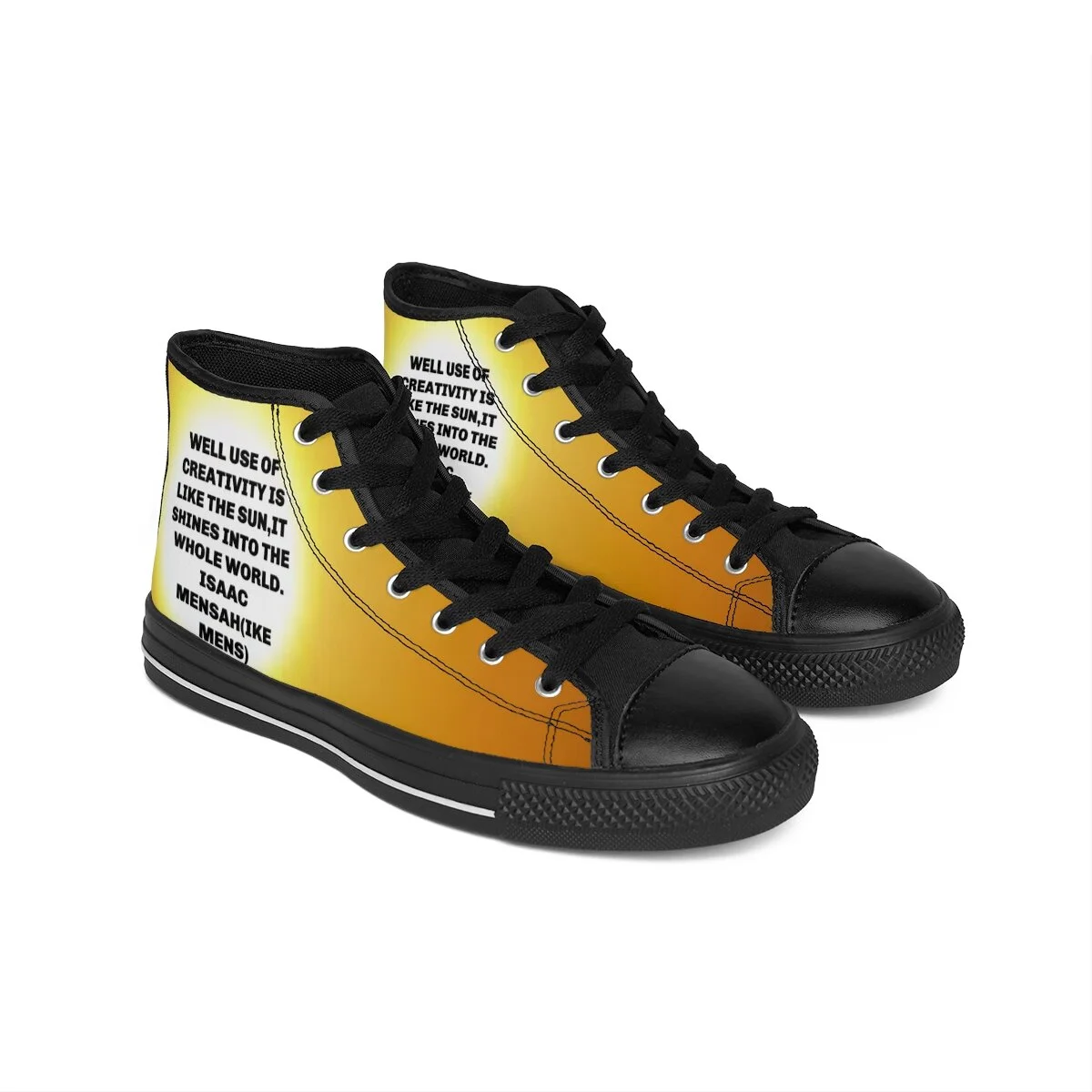 Fashion sense has no limits! These extremely comfortable high-top canvas sneakers with a high quality print are made to last and to impress - a truly original way to express oneself and inspire new fashion trends on the go. .: Made of 27.87 oz. Nylon canvas .: 6-12 US size .: 5" calf height .: Durable rubber outsole .: Black inside interior .: NB! Not suitable for fine prints due to base canvas material