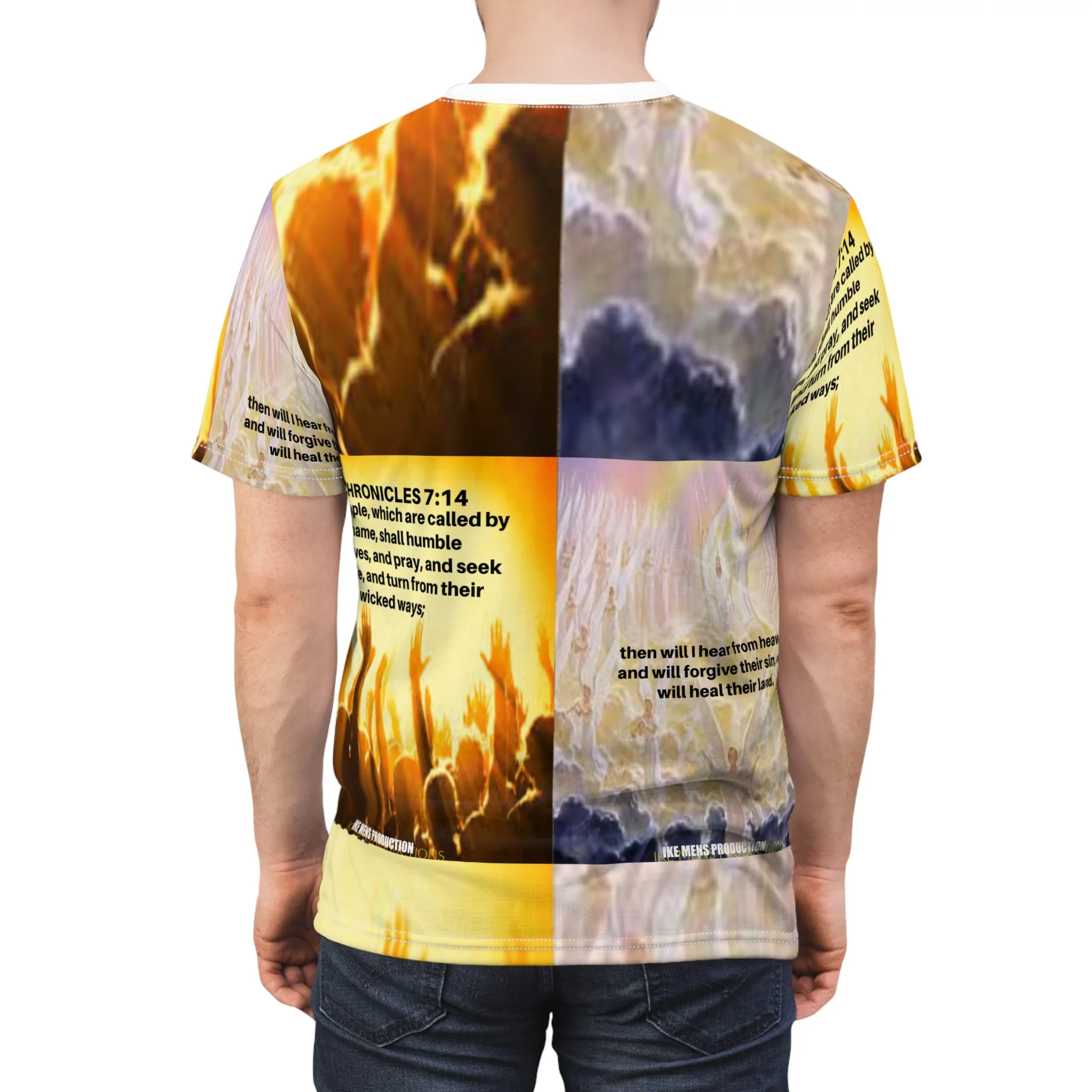 IKE MENS SCRIPTURE COLLAGE Unisex Cut & Sew Tee (AOP)