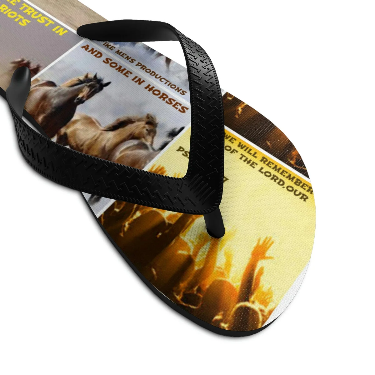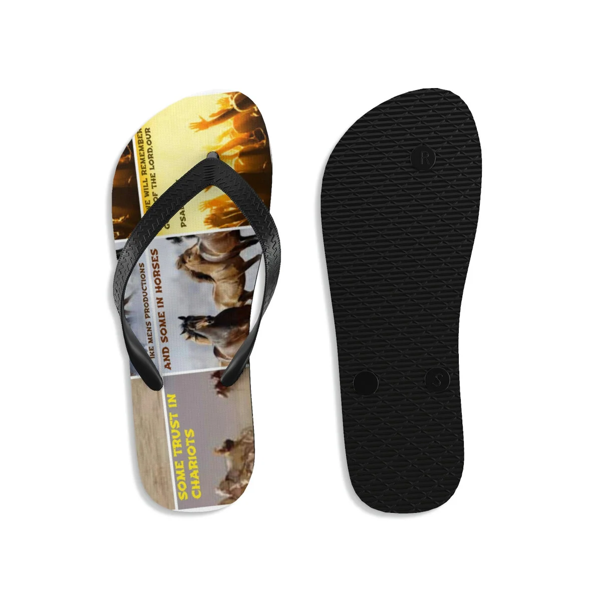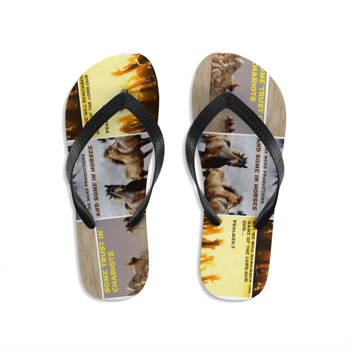 Let your feet breathe! With a high quality print, these Flip Flops are a must have item on the beach, around the house or to brighten up a special outfit on hot summer days. .: 100% Rubber .: Multiple sizes .: Textured black thong strap .: Runs bigger than usual