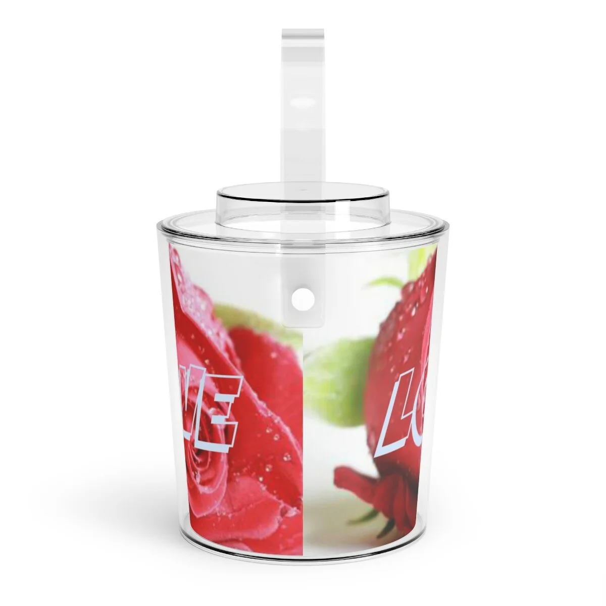 Bring a personal touch to any gathering that requires frosty beverages with this personalized ice bucket. Each personalized acrylic ice bucket comes with its own tongs and has a 3 QT (96oz) capacity. What's more, you also get an easily removable lid that adds convenient handling to the mix. .: 3 qt (96oz) capacity .: Easily removable lid and convenient handle .: Acrylic Lucite material .: Full wraparound print .: The design is duplicated on both sides .: Hand wash only