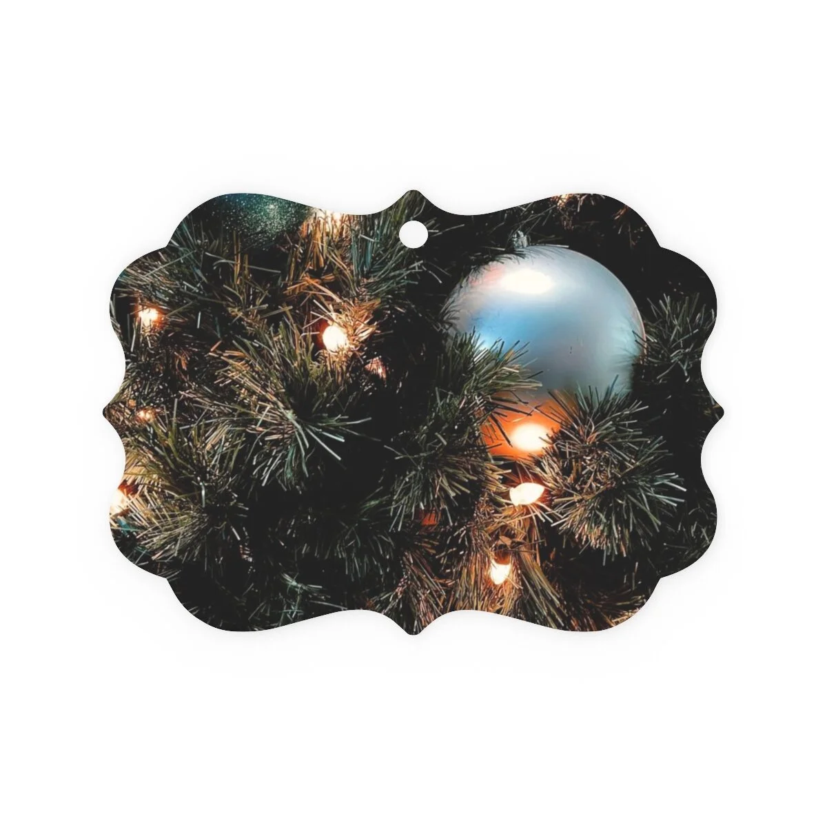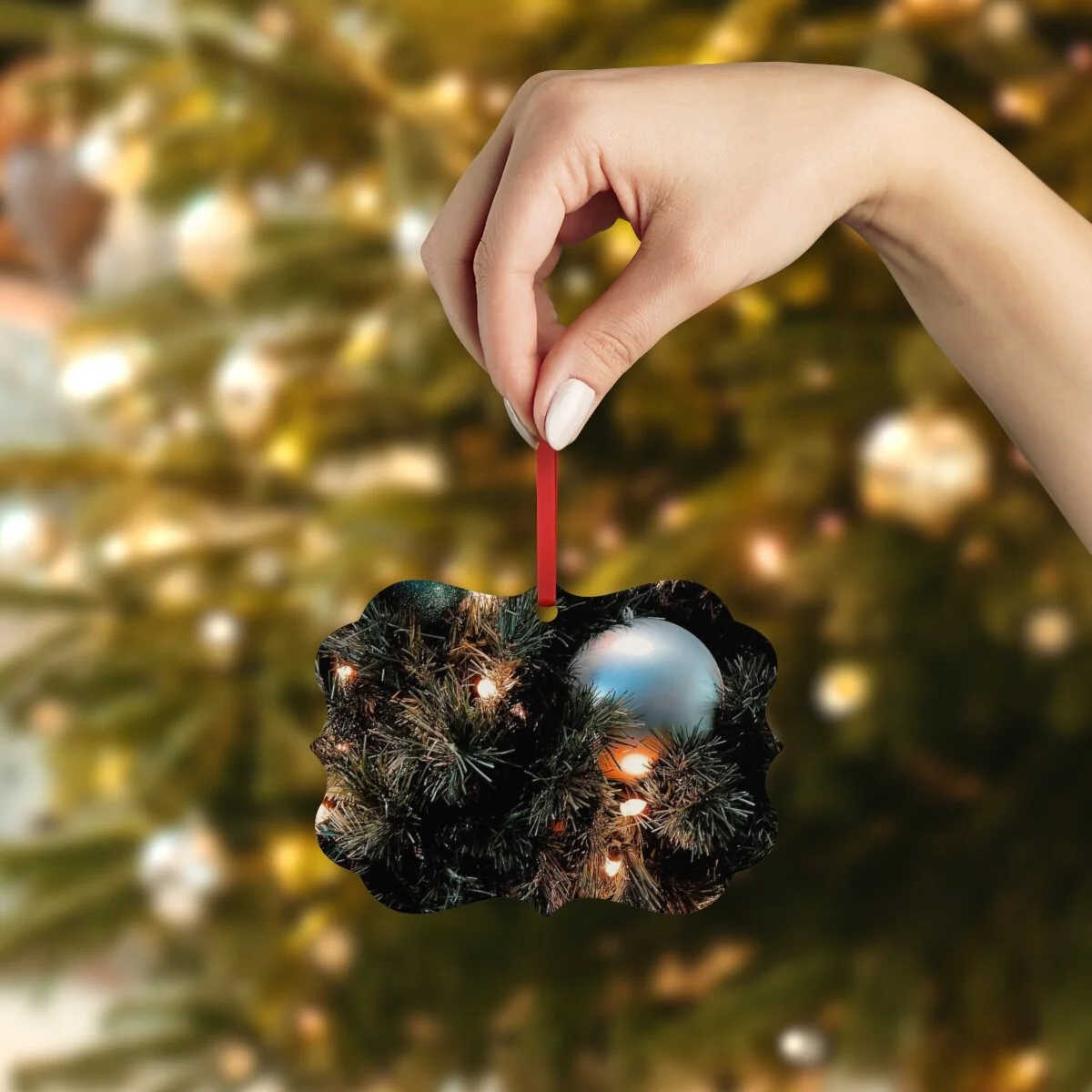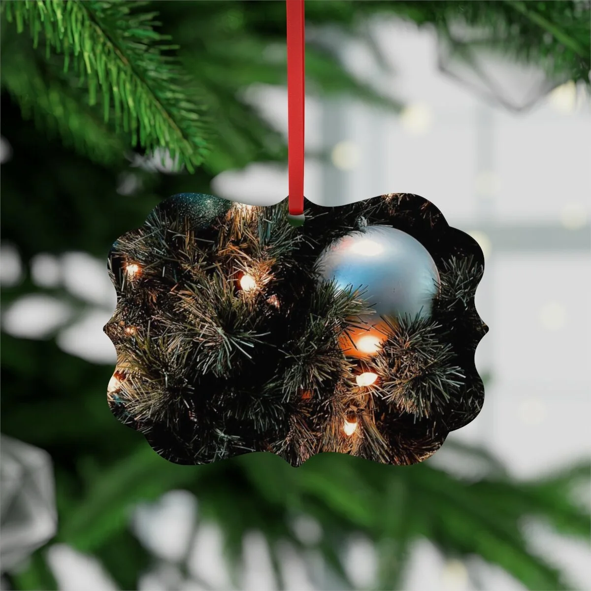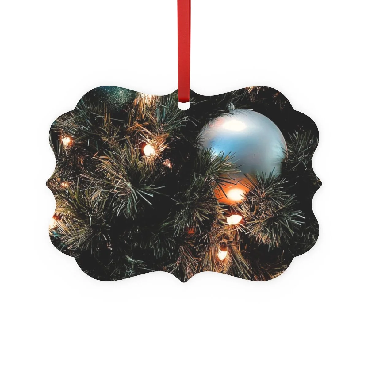 Add a personal flair to your tree this year with a metal Christmas ornament. Each ornament features a double-sided print and comes with an included red hanging ribbon for your convenience.
